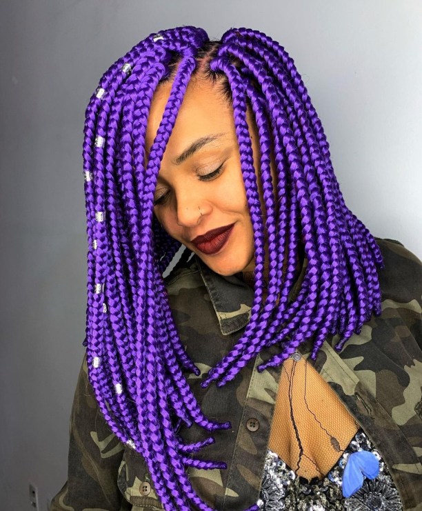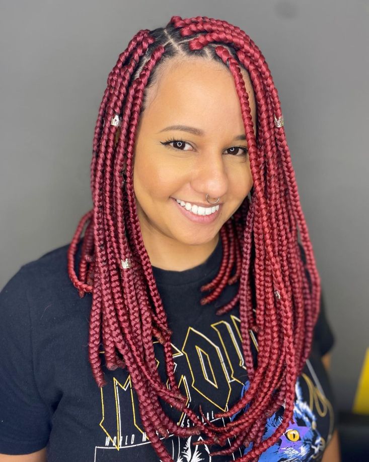 Infuse vibrancy into your medium box braids by adding colorful extensions. Experiment with bold hues to express your unique personality.
