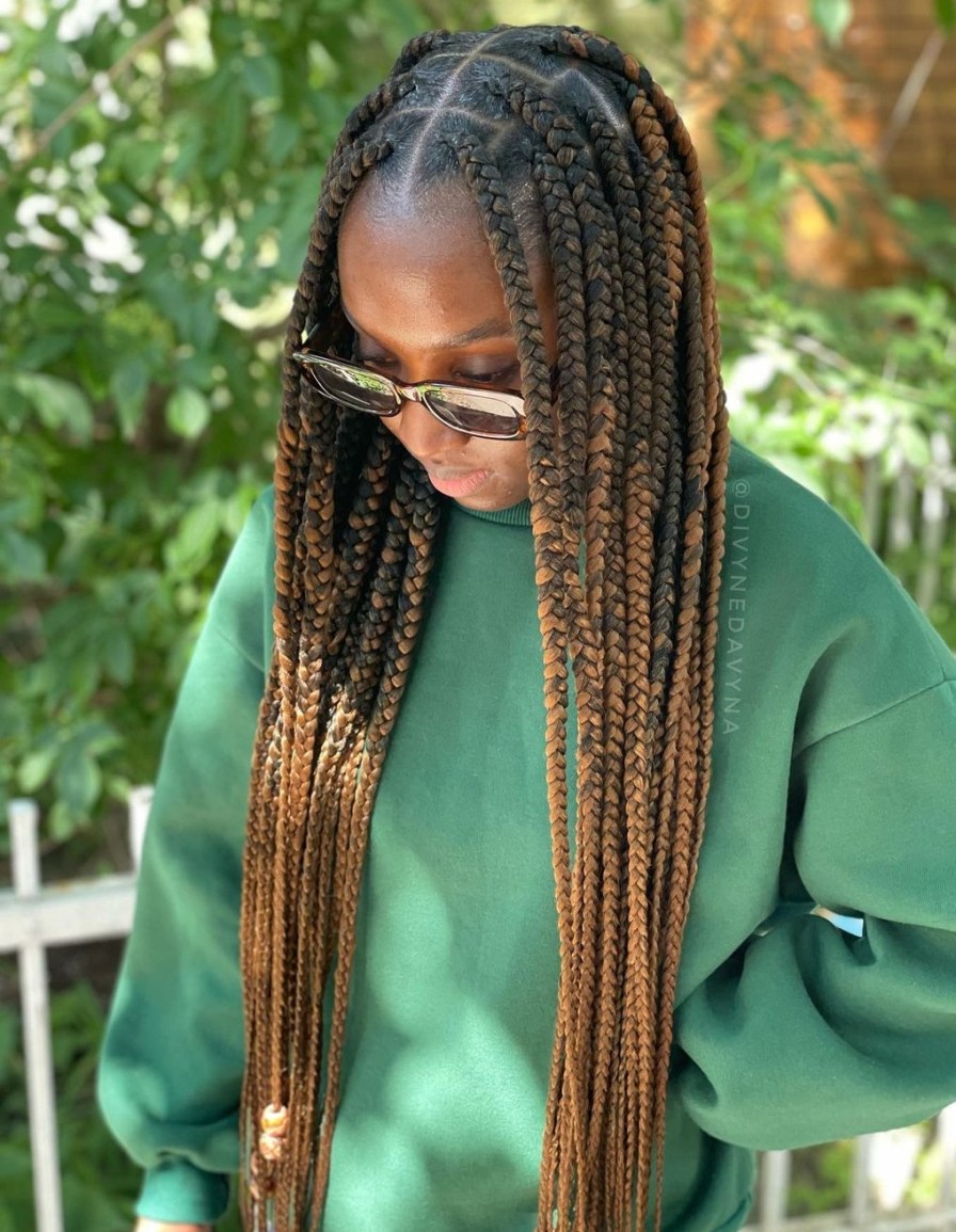 Add a touch of allure to your medium box braids with an ombre effect. Gradually transitioning colors create a dynamic and eye-catching hairstyle.