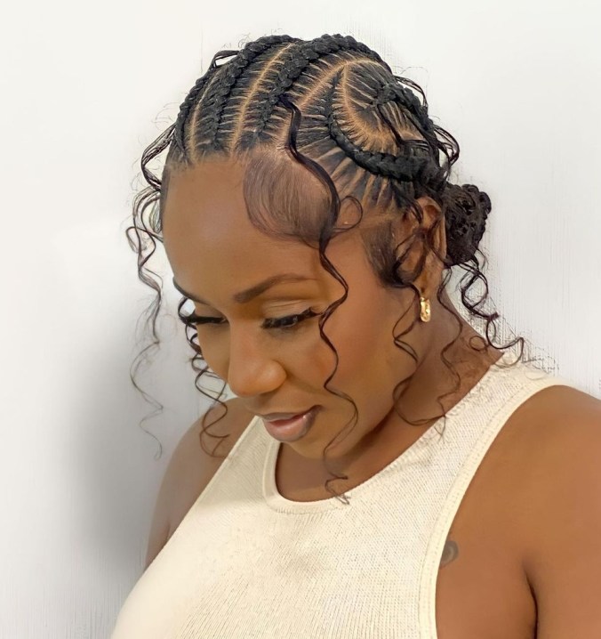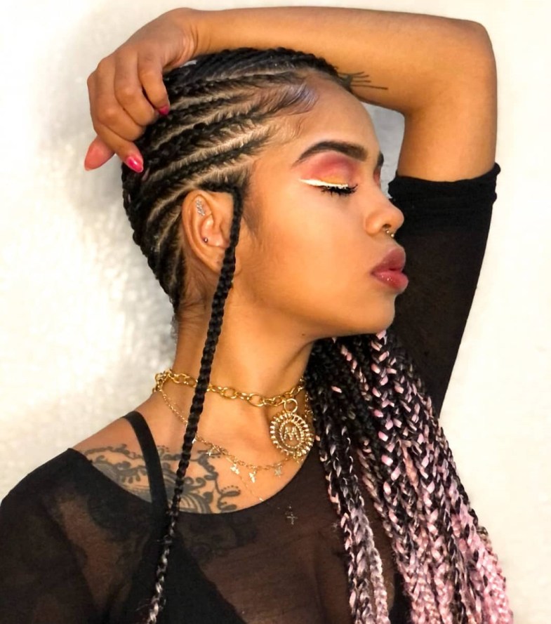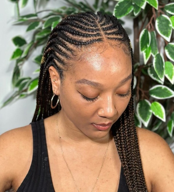 Add a dynamic twist with zigzag Ghana braids that create a captivating pattern. This style is all about embracing creativity.