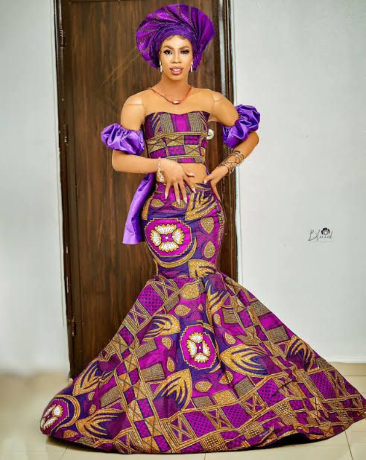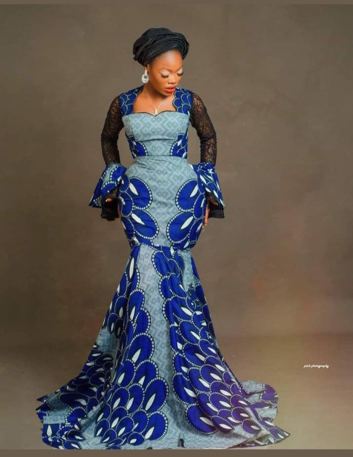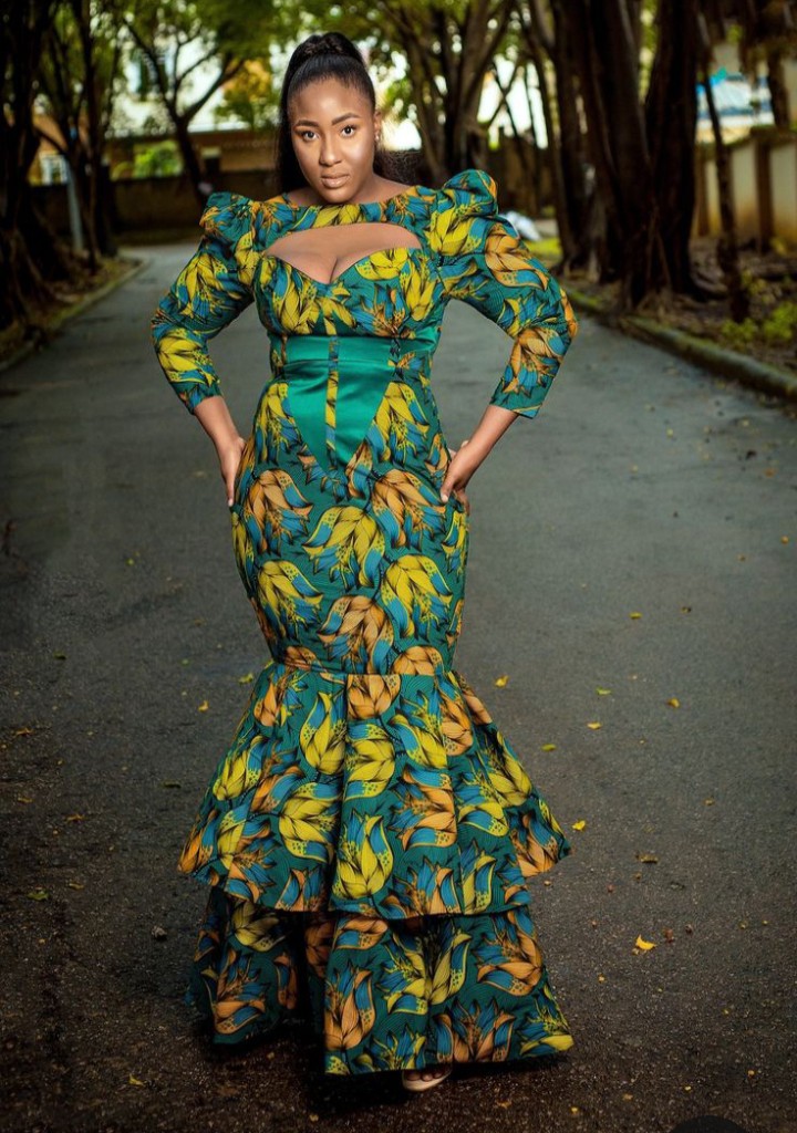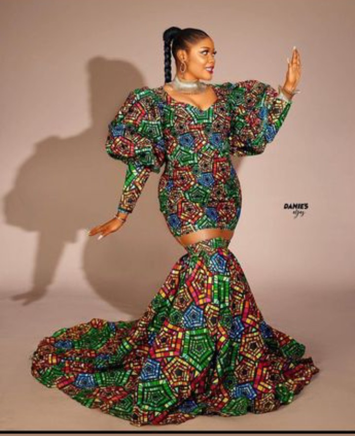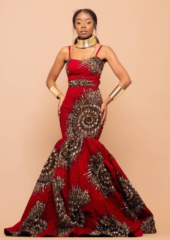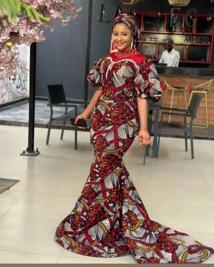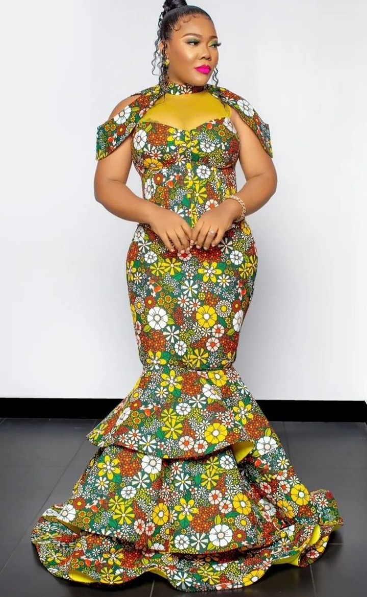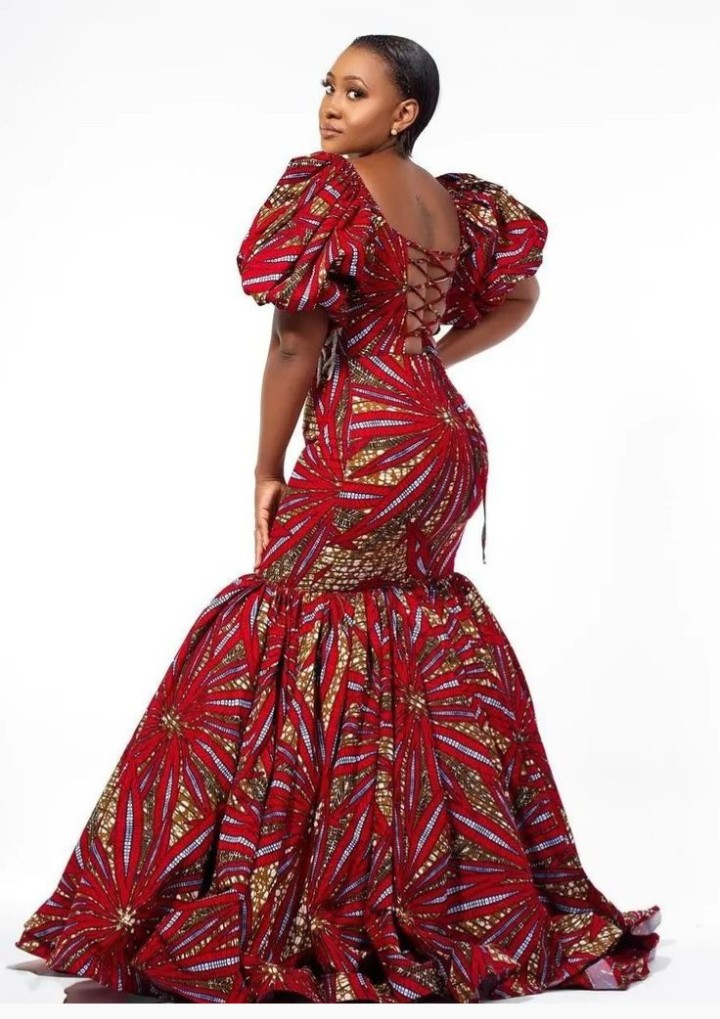 Embrace your inner diva with a mermaid gown in vibrant Ankara print, perfect for a formal event or a red-carpet-worthy look.
