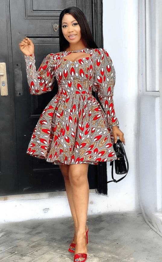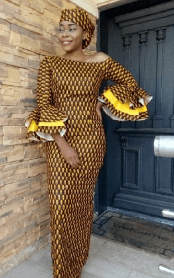 20. Ankara Flutter-Sleeve Dress: Opt for an Ankara dress with flutter sleeves for a feminine and stylish office look. Pair it with closed-toe heels or block heels.
