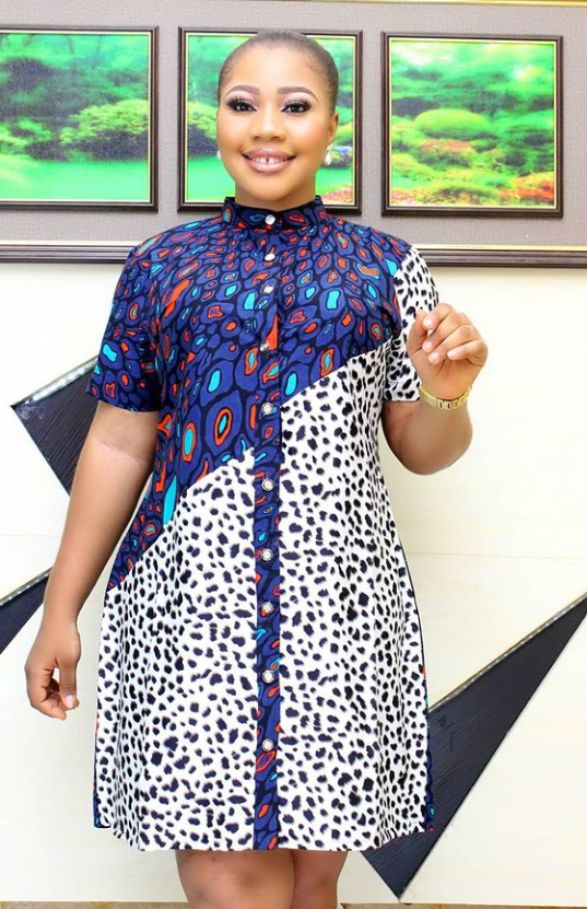 22. Ankara Tunic Dress and Leggings: Choose an Ankara tunic dress with a length that covers the hips. Pair it with leggings or opaque tights for a comfortable and modest office look.