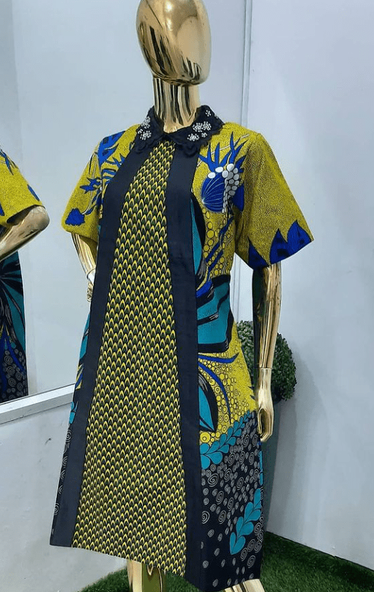 13. Ankara Collar Dress: Choose an Ankara dress with a collar for a more tailored and office-appropriate look. Pair it with closed-toe heels for a polished appearance.