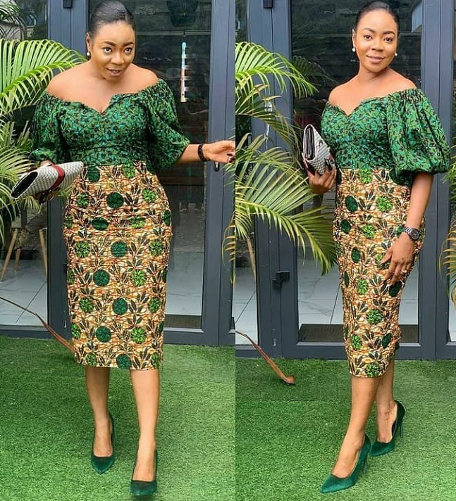 2. Ankara Pencil Skirt and Blouse: Combine a fitted Ankara pencil skirt with a solid-colored blouse for a balanced and stylish ensemble. Add a statement belt to accentuate your waist.