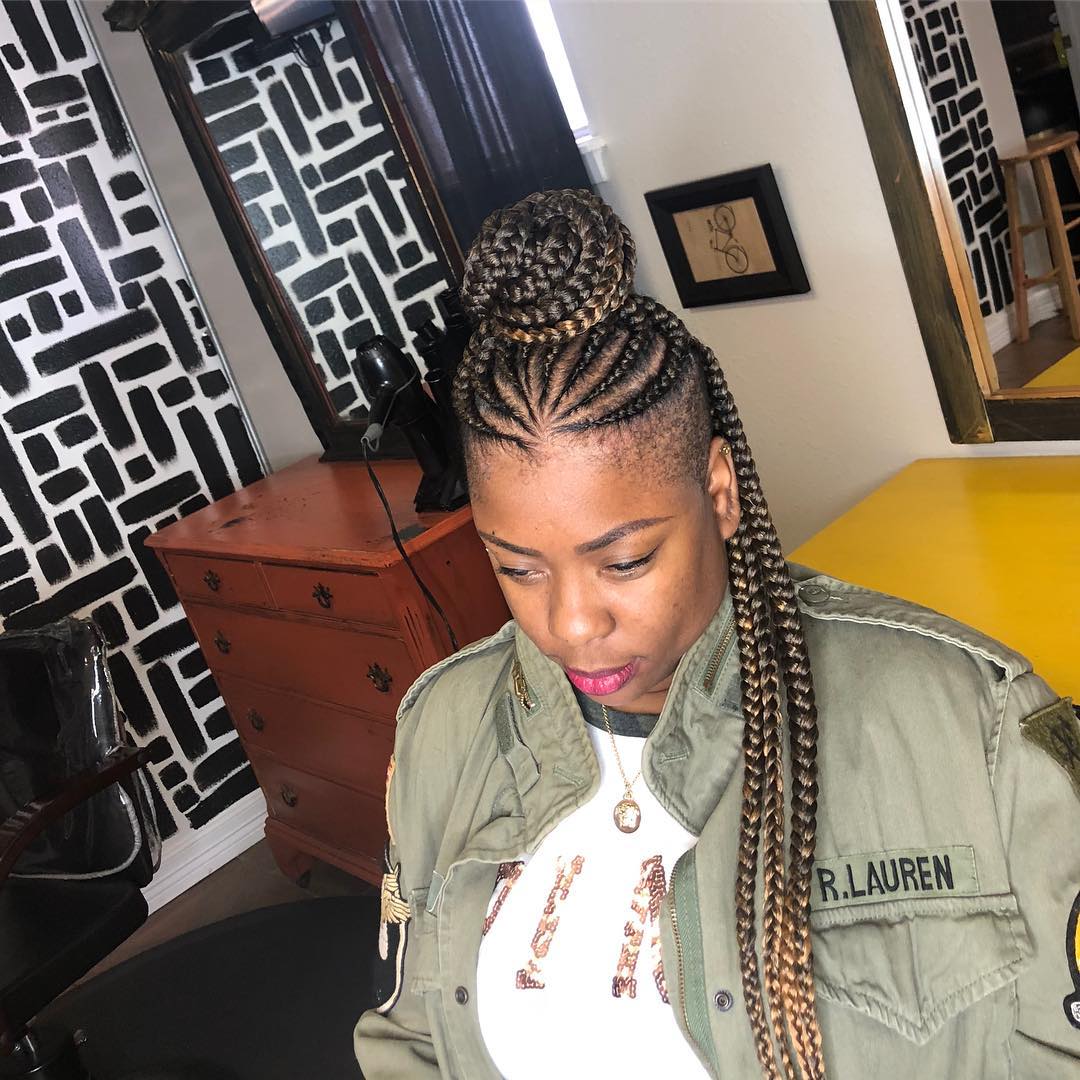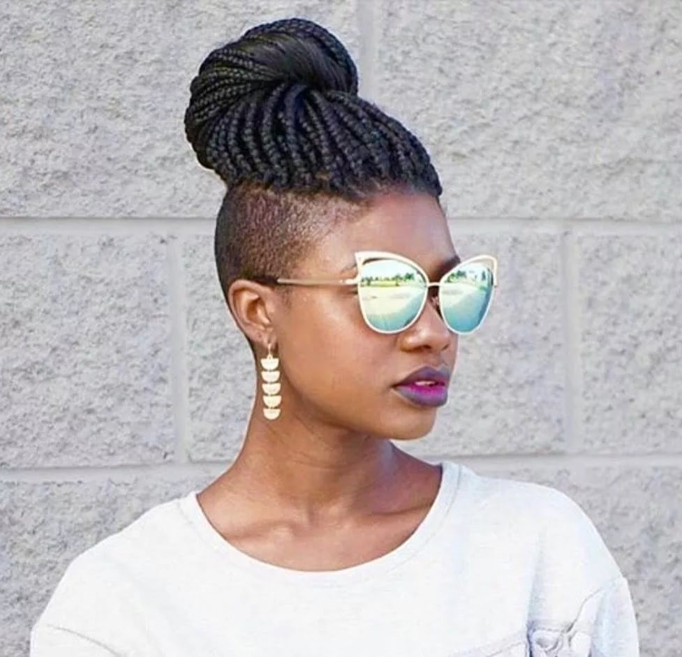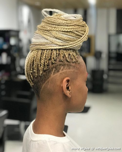 – Braided Crown: Create a braided crown by gathering the braids from the sides and the back of your head, leaving the shaved sides exposed. This regal and eye-catching style beautifully combines the elegance of braids with the boldness of the shaved sides.