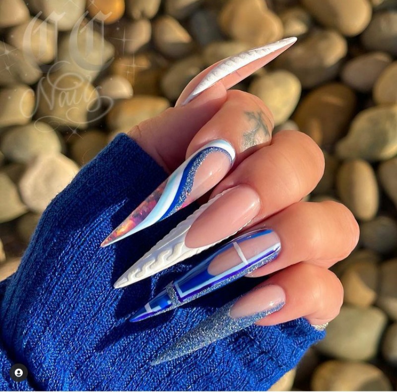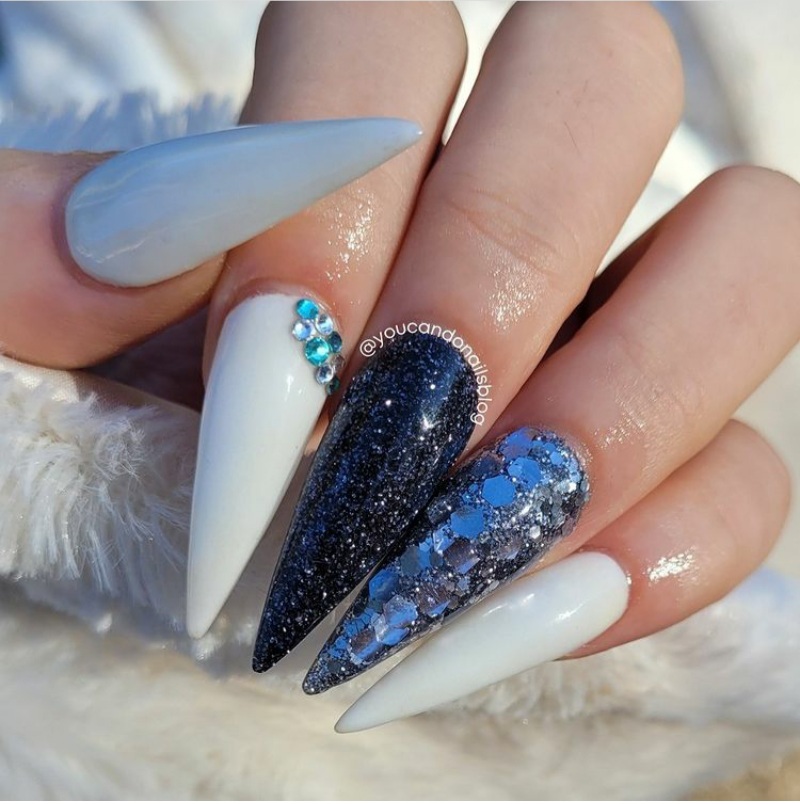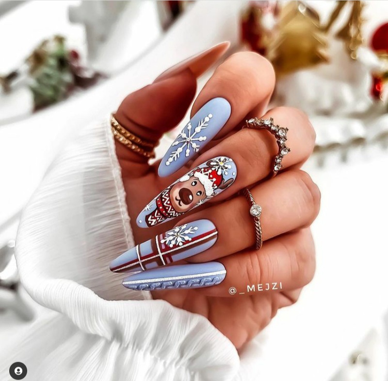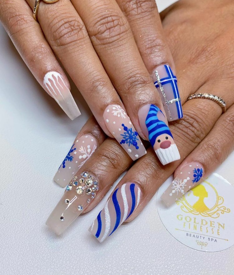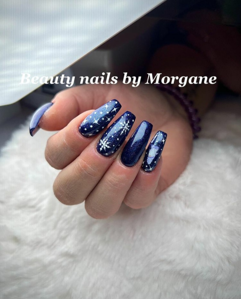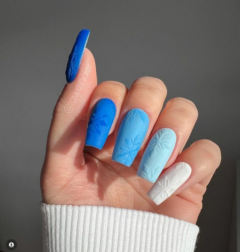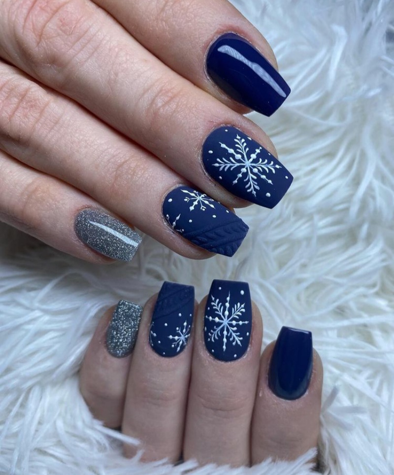 Although most people prefer the traditional red and white nails for the holidays, those aren’t the only colors you can use for the holidays. As a matter of fact, one gorgeous color that is also perfect for the holidays is blue. See below for some blue nails that are perfect for the 2024 holidays.