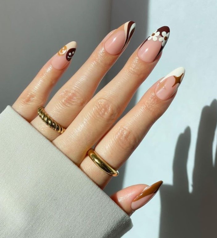 For all my floral girlies, here is the cutest fall French nail design for you! Let’s just take a moment to appreciate the use of the autumn-inspired palette to create this beauty.