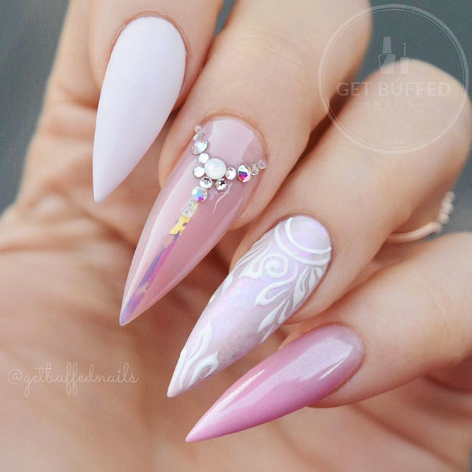 In the contemporary fashion world, white and pink can be seen a lot together, especially in trendy nail art. This combo grants a somewhat luxurious and sophisticated impression yet appears rather natural. And that is the effect we are often searching for.