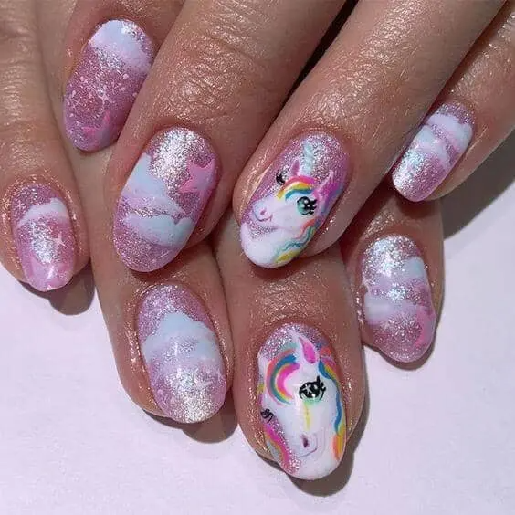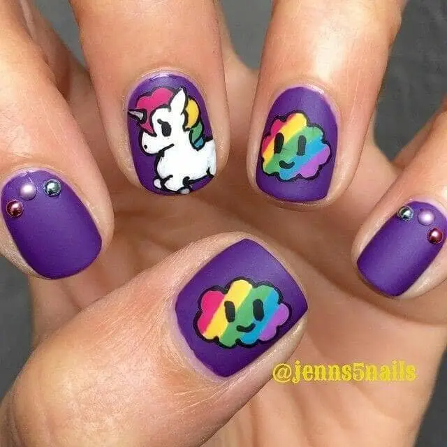For mystical creatures, unicorns sure are getting a lot of face time these days. From unicorn cupcakes and Frappuccinos to unicorn…pizza? It is officially a thing, and we think cute nails are just the right place for all those rainbows (and lots of glitters). Believe it or not, we have whipped up 50 ethereal nail art looks are unicorn nail design ideas for you to try.