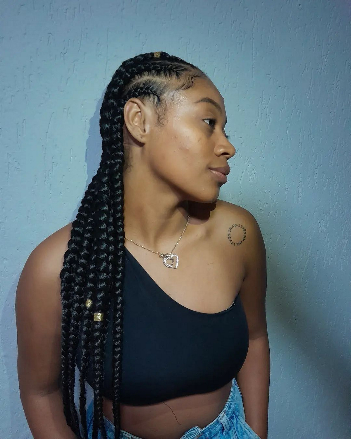 - Side-Swept Ghana Braids: Add a trendy twist to your Ghana braids by sweeping them to one side. This asymmetrical look is chic and eye-catching.