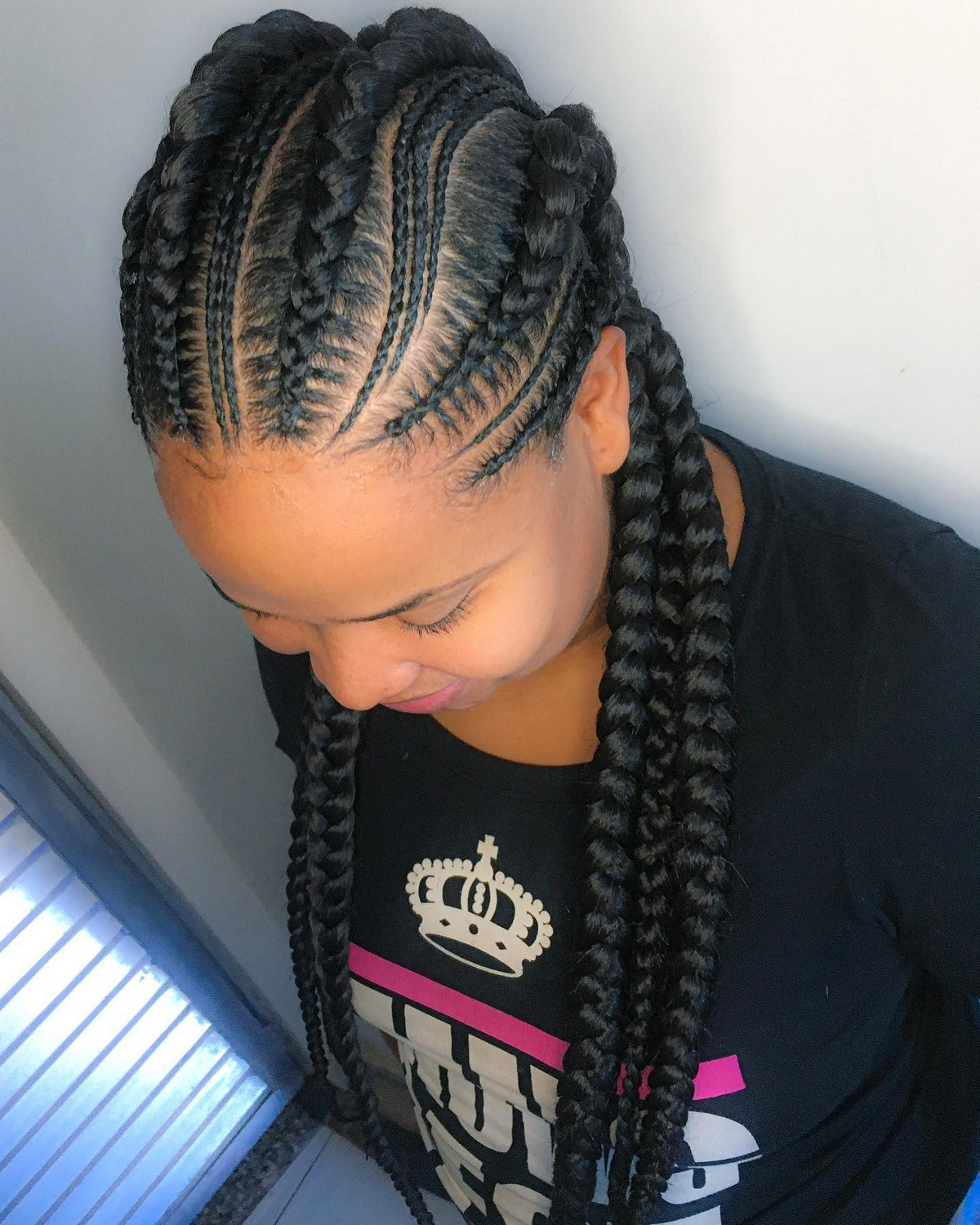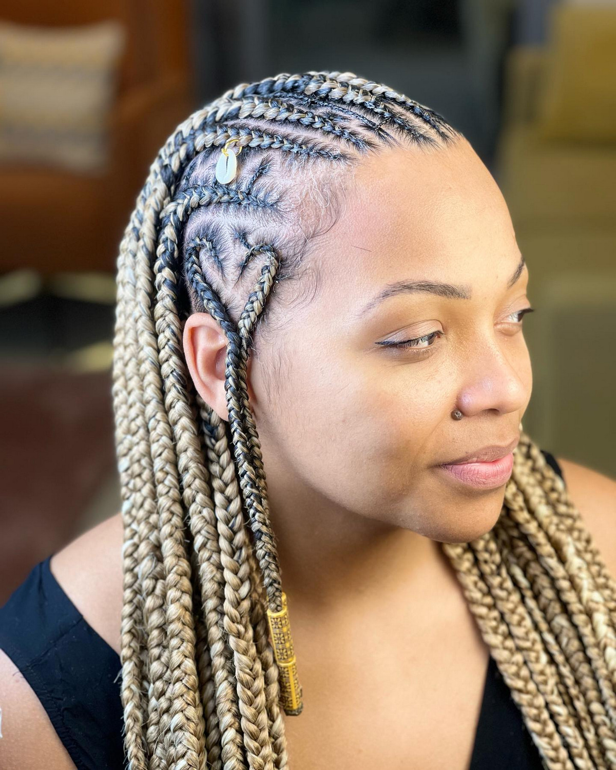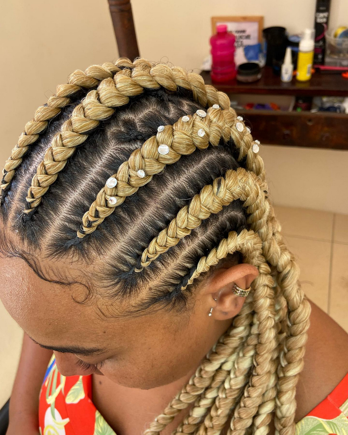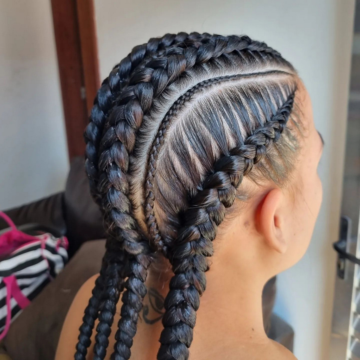 - Ghana Braids with Geometric Patterns: Get creative with your Ghana braids by incorporating intricate geometric patterns or designs. This artistic approach adds a unique and artistic flair to your hairstyle.