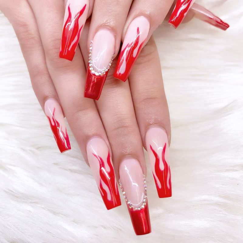 Red color looks great on the nails. It’s a timeless color that’s been fashionable for decades, but it does require a lot of confidence to pull off because it’ll bring attention to your hands. Knowing this, make sure your nails are well-kept, since damaged polish or unruly talons will stand out even more when painted in this striking hue.