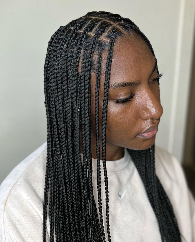 - Box Braids Side Swept: Sweep your box braids to one side for a glamorous and asymmetrical style. This effortless look exudes confidence and elegance.