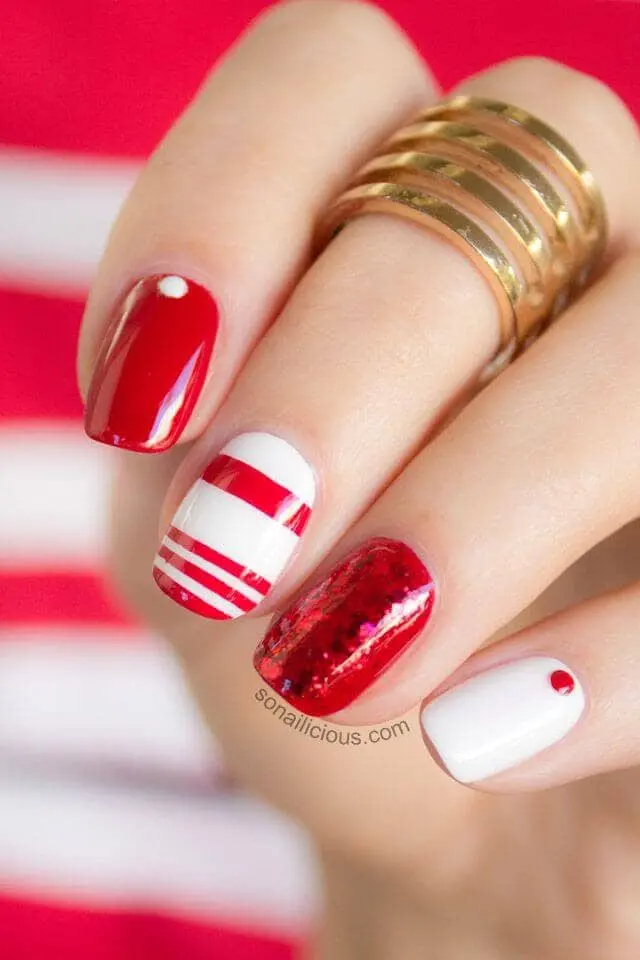 And that’s just solid red. When you start adding nail art designs, red becomes even more versatile. Accent nails look great with a splash of white. Glitter and red are absolutely made for each other. Red and gold nails give your manicure a luxe, vibrant look you don’t get with many other colors. There are just so many different nail designs.