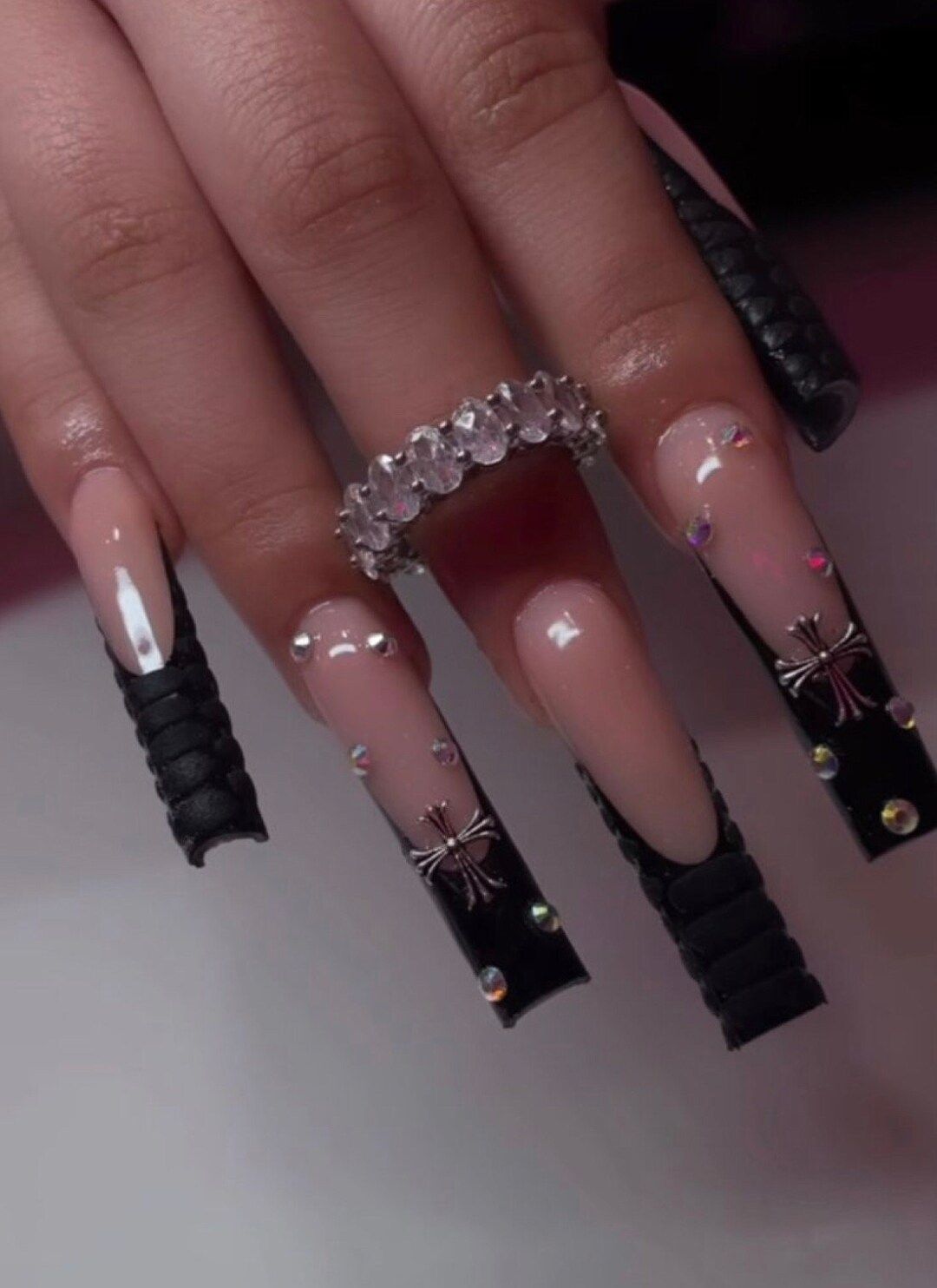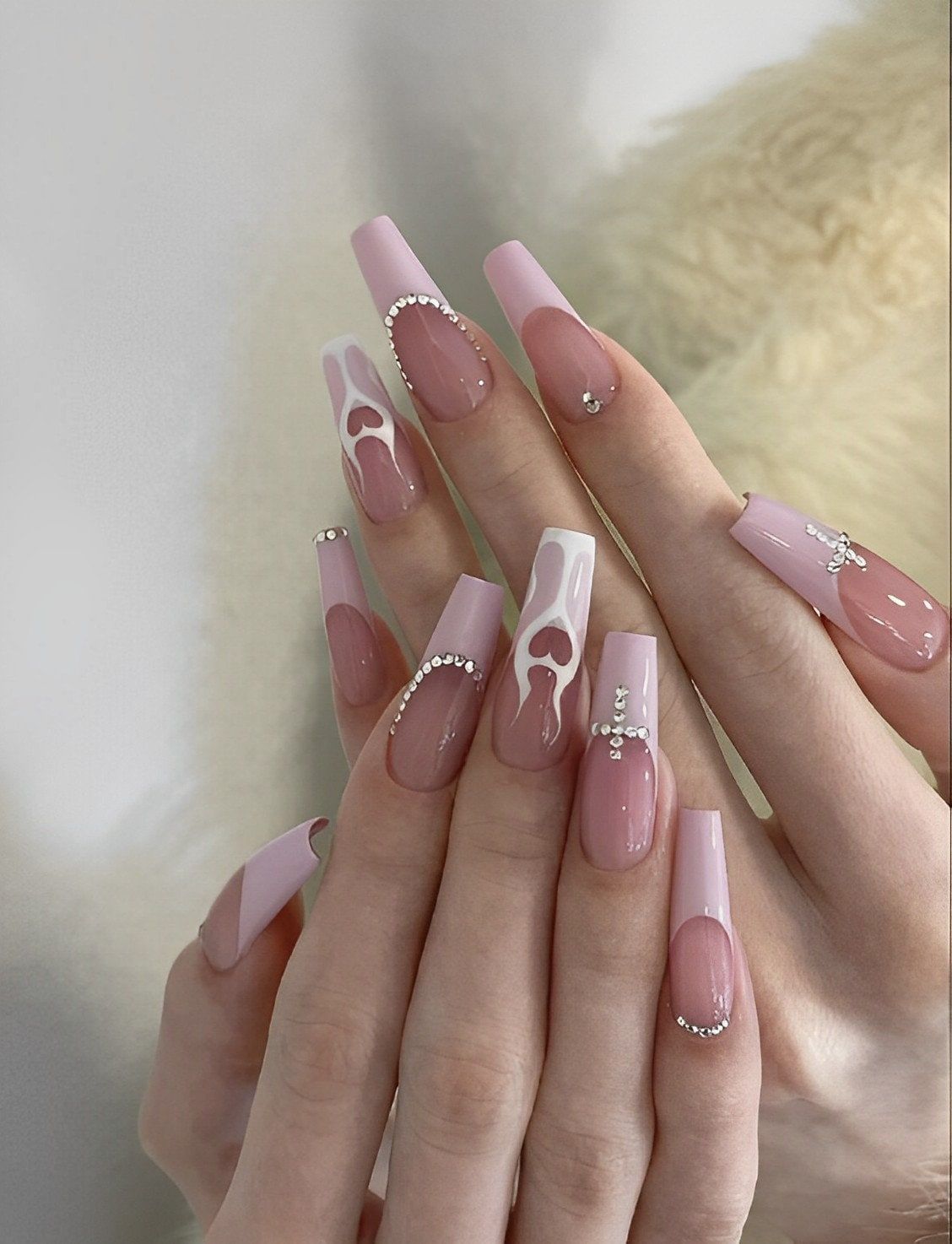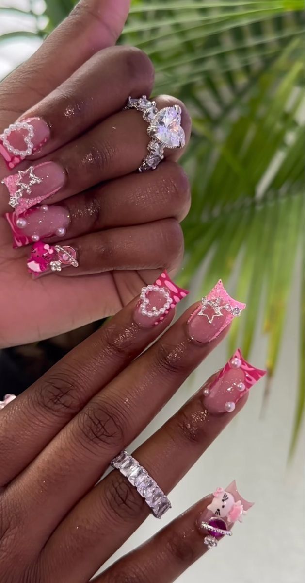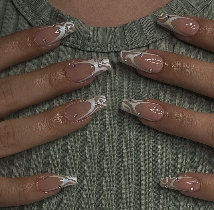 - Adorn your nails with tiny rhinestones, gems, and studs for a glamorous and sparkling Y2K nail look.