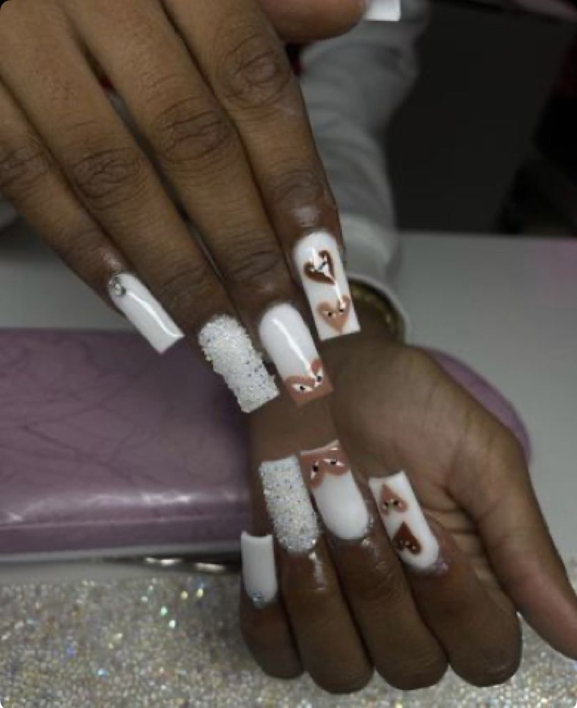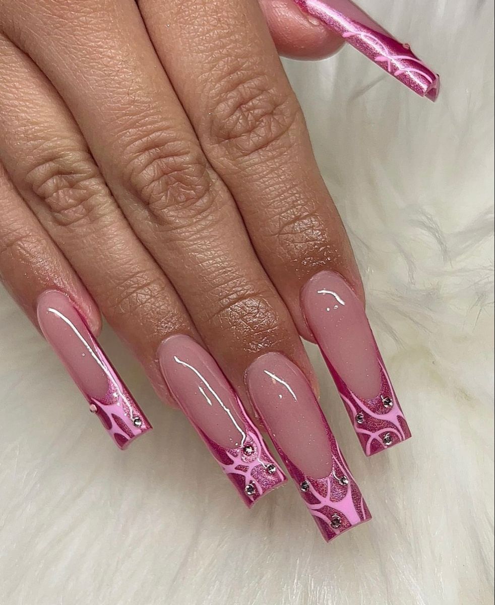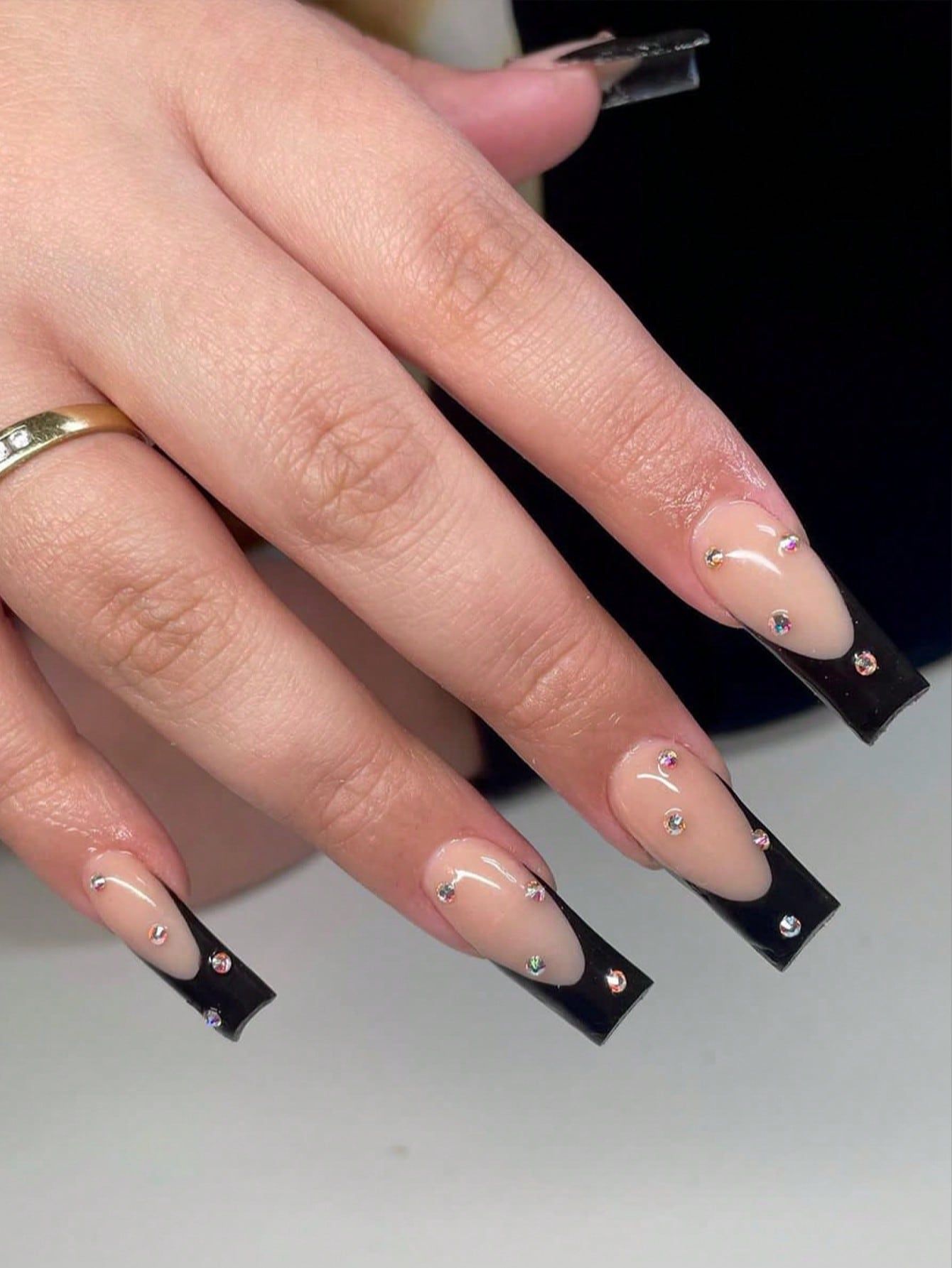 - Adorn your nails with tiny rhinestones, gems, and studs for a glamorous and sparkling Y2K nail look.