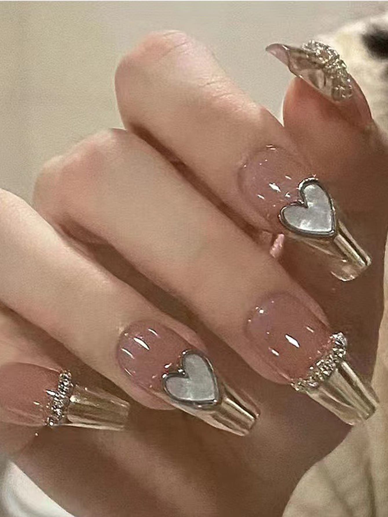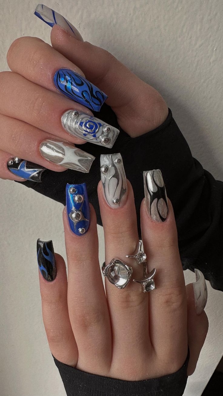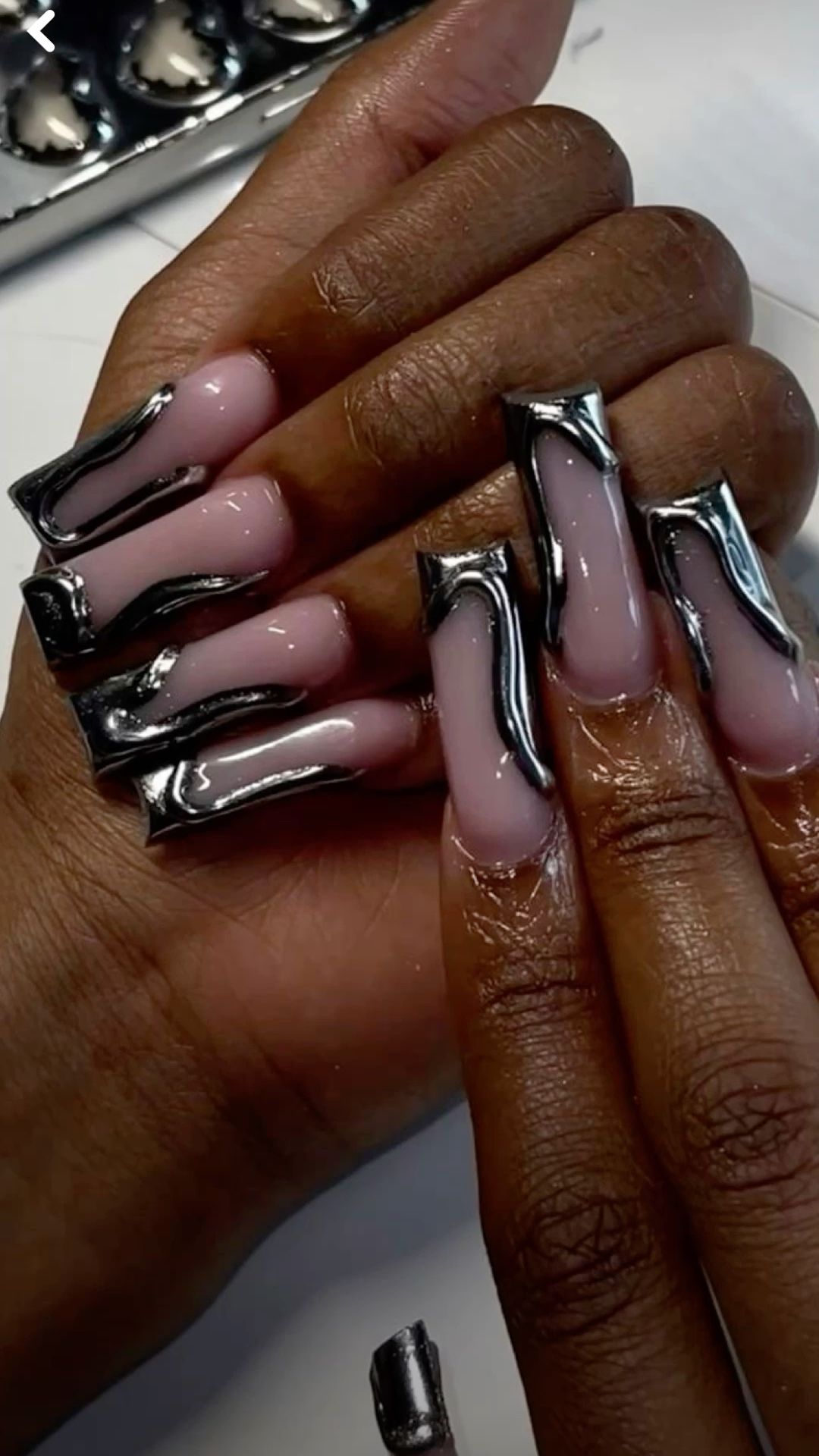 - Experiment with metallic foils in silver, gold, or holographic shades for futuristic and shiny Y2K nails.