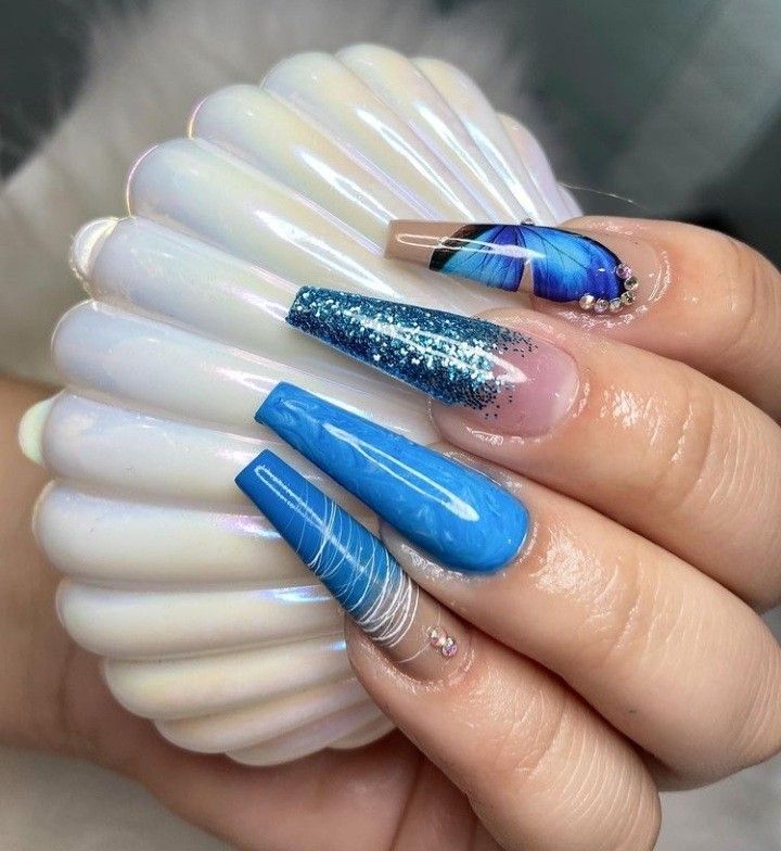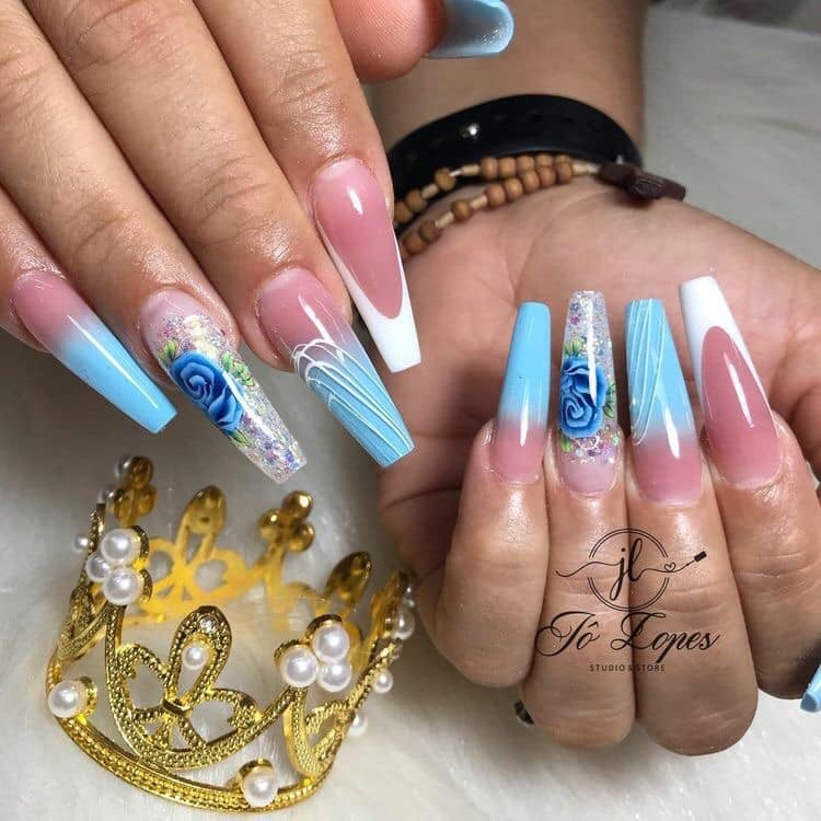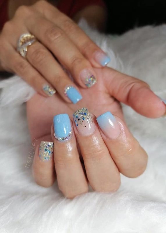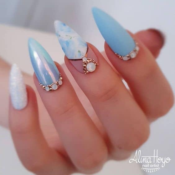 40+ Hermosas Ideas para Uñas Azul Cielo 💙💙💙