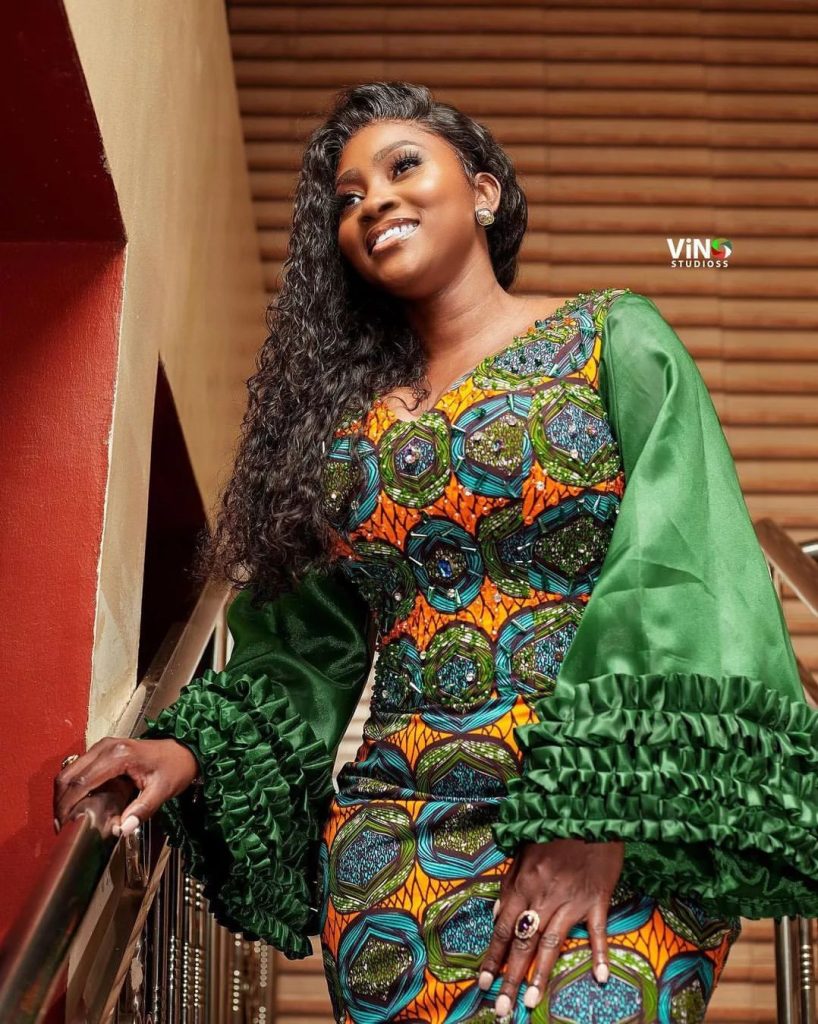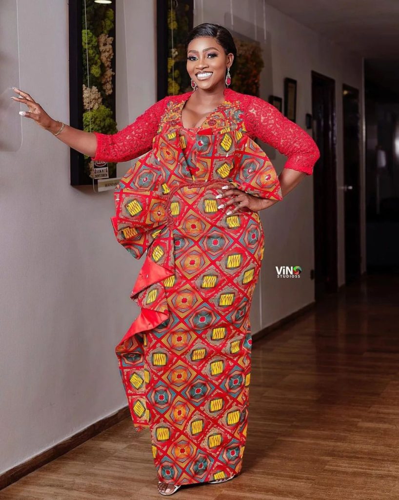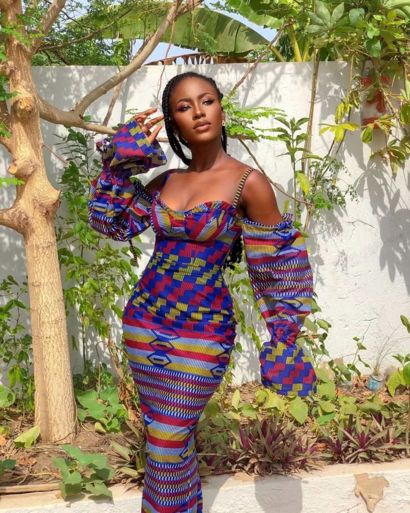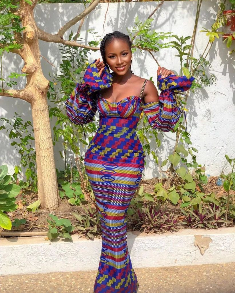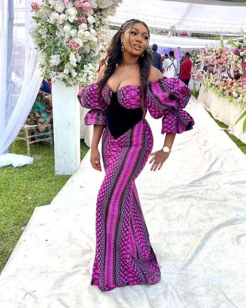 - Kente Print Gown: A gown made from Kente fabric, known for its intricate geometric patterns and bright colors.