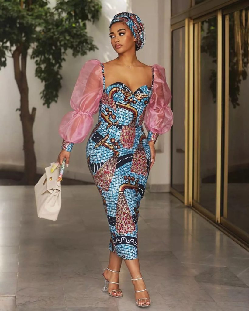 - African Print Mermaid Dress: A fitted dress that flares out at the bottom, resembling a mermaid’s tail.
