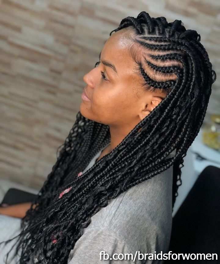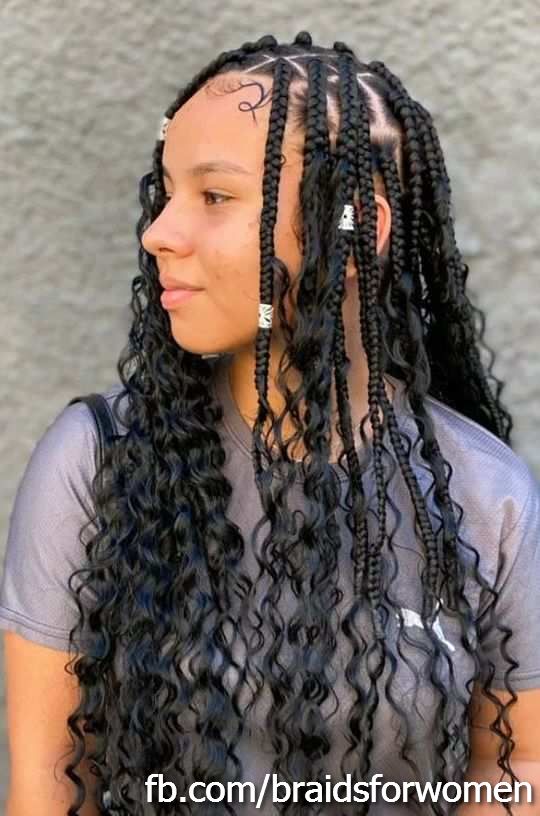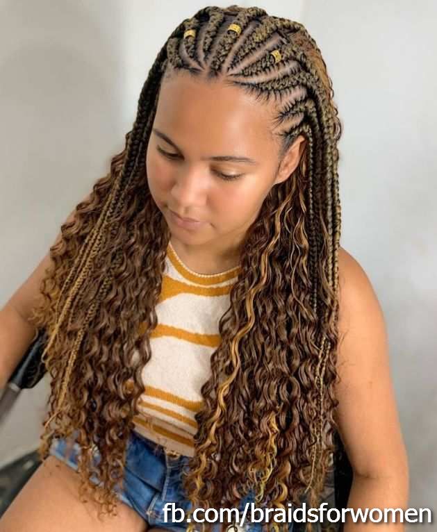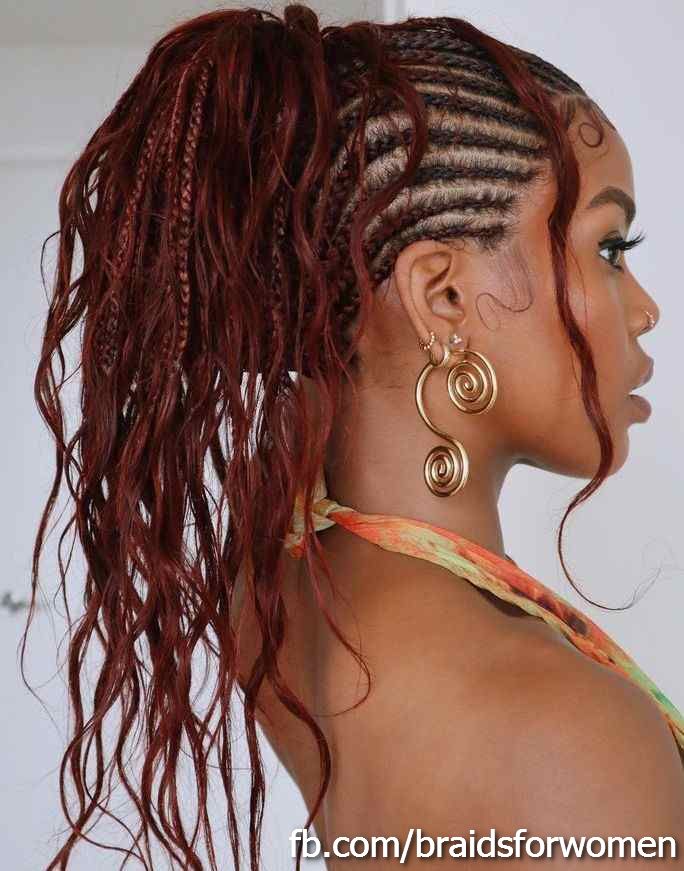 Braid a section of your hair into Goddess braids and pull them back into a ponytail, leaving the rest of your hair cascading down. This style combines the best of both worlds.