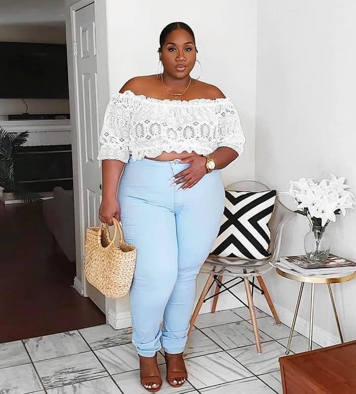 2. High-Waisted Jeans and Crop Tops: Embrace the high-waisted trend by pairing your favorite jeans with a trendy crop top. High-waisted jeans cinch the waist and elongate the legs, while a crop top highlights the upper body. Choose a crop top that suits your style, whether it’s a flowy blouse or a fitted t-shirt, and complete the look with accessories like statement earrings or a cute belt.