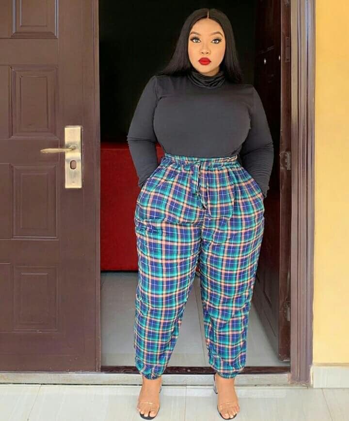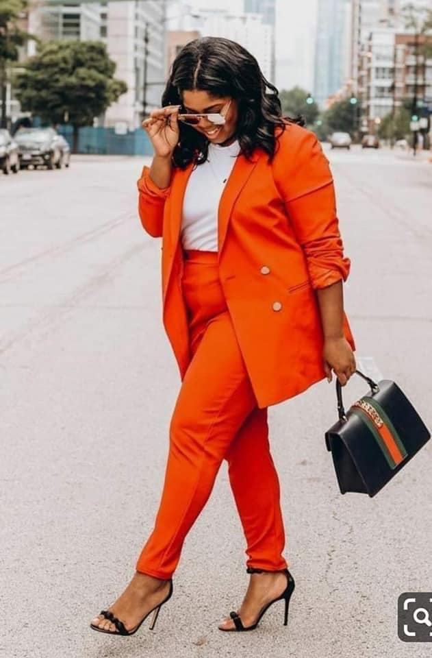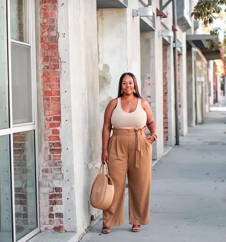 4. Wide-Leg Pants and Blouses: Wide-leg pants are both trendy and comfortable for plus-size women. They create a balanced and elongated silhouette while providing freedom of movement. Pair them with a flowy blouse or a tucked-in fitted top for a chic and sophisticated look. Add a statement belt or a tailored blazer to complete the ensemble.