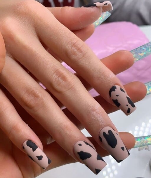 However, cow print nails are pretty tough to do! Many nail technicians don’t know how to do them yet, so you need to be prepared if you want a cow print manicure.