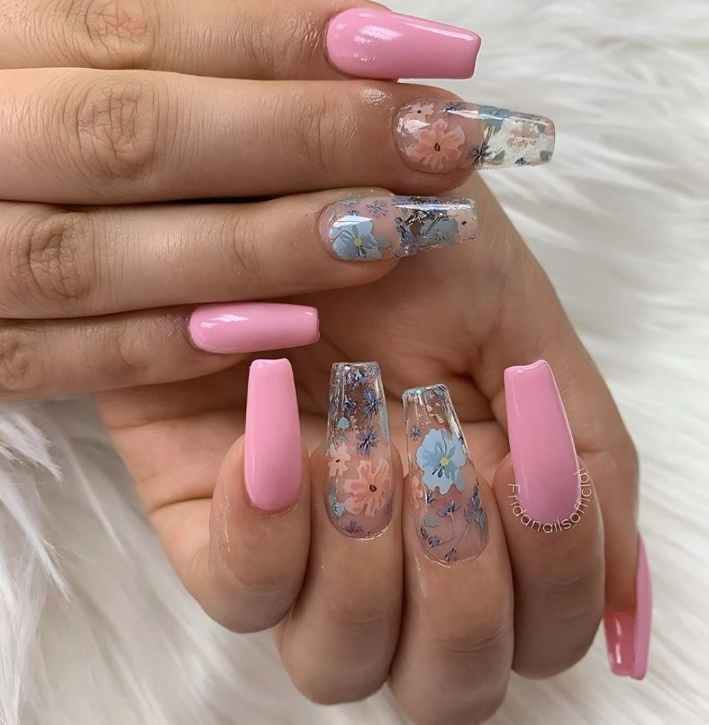 Flowers are the symbol of beauty. They remind us of the prettiest things in the world. We see flowers on our clothes, accessories, and just about anything else. So why don’t we incorporate them into our nails? Floral manicure is very popular among sophisticated ladies and romantic girls. If you’re wondering about your next nail art, try floral designs!