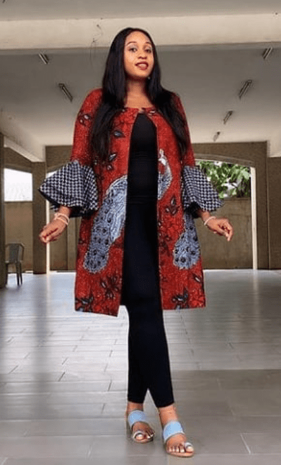 Add a bohemian touch to your outfit with a peacock Ankara kimono. Layer it over a solid-colored dress, jeans, or shorts to create a fashionable and eclectic look. The kimono’s flowing silhouette and peacock patterns add a sense of grace and uniqueness to your ensemble.