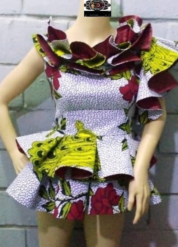 Make a bold fashion statement with a peacock Ankara blouse. Pair it with solid-colored bottoms such as black trousers, jeans, or a skirt to allow the blouse to stand out. This combination is perfect for both casual and semi-formal occasions, adding a touch of elegance and culture to your look.