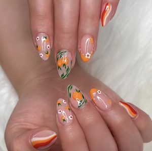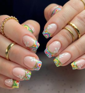 While many designs stay popular from year to year, others, like diagonal french tips, color-blocked minimalist designs, and vintage nail art inspired by 70s embrace current spring trends about as intensely as we embrace our morning coffee.
