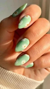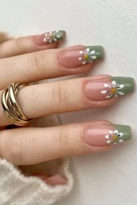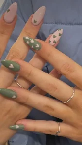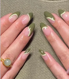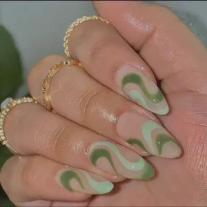 I personally love sage nails in the fall. However, they’re really beautiful any time of year. As you’ll see below, there are many different kinds of designs you can try! Some of my favorites include leaf and flower art, sage-colored tips, and abstract swirls with the sage color.