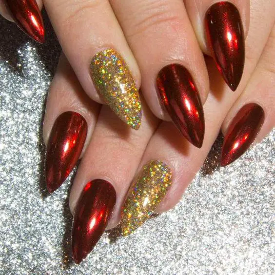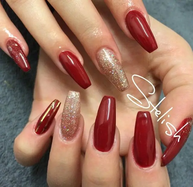 If you’re looking for something simple, try a red polish with gold accents. For something more dramatic, go for a red matte polish with gold glitter. If you really want to make a statement, try red and gold ombre nails.