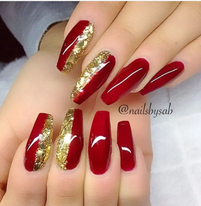 45+ Stunning Red and Gold Nails For A Sophisticated Manicure