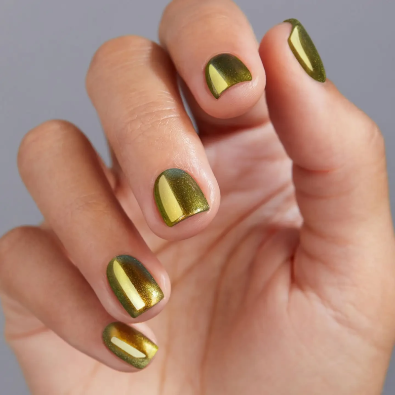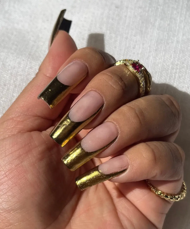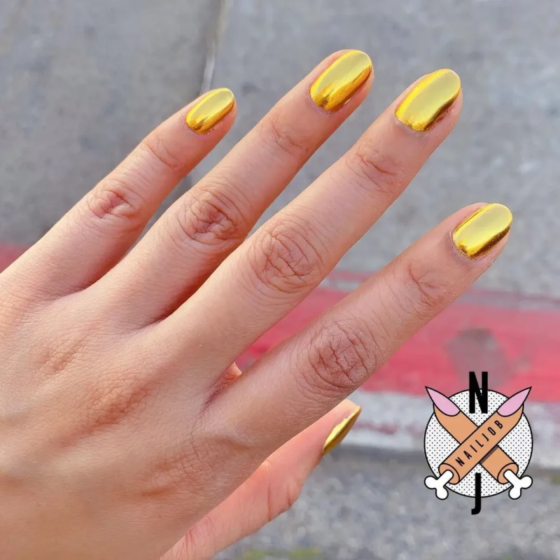 Another great idea are gold chrome nails that are perfect if you want a sharp edge to your nail design.