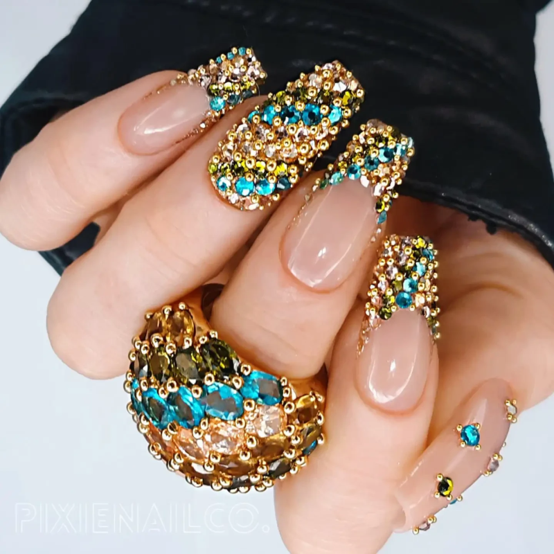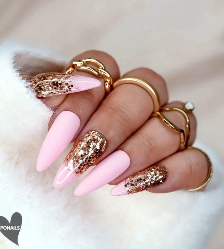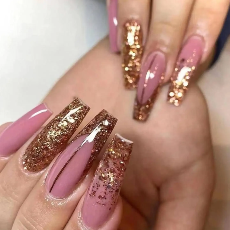 If you’re bored of the usual gold shade, then you can also switch it up with rose gold. This popular shade has been trendy for the past decade or so, and is a crowd favorite when it comes to nail design.