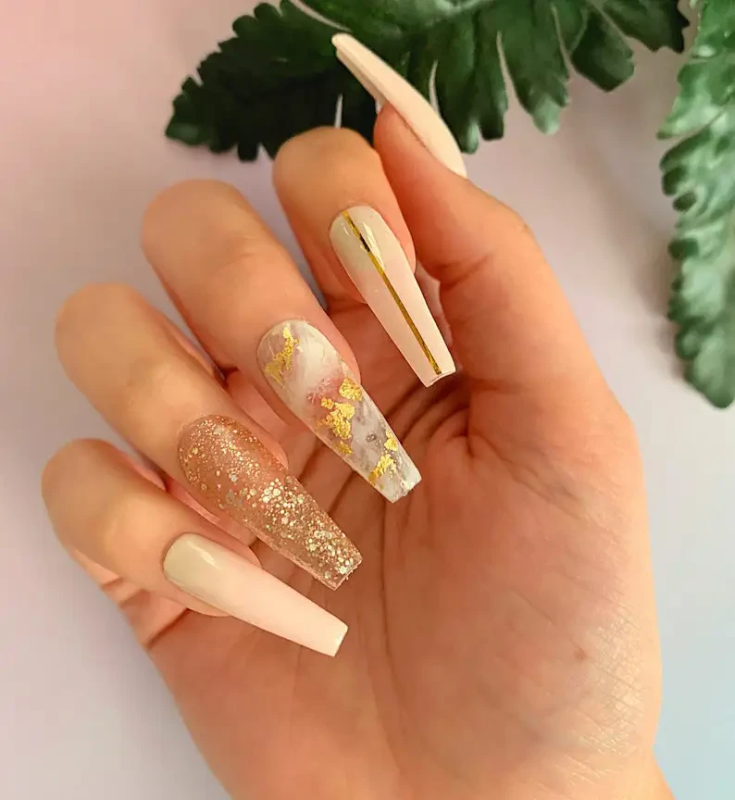 The possibilities are endless, really. One great quality about gold is that you can add it as an accent to any nail design, whatever color, and it would fit right in.