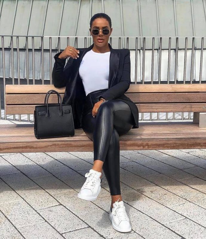 5. Athleisure Look: Embrace the comfort and style of athleisure wear by pairing leggings or joggers with a sweatshirt or hoodie. Choose athleisure pieces in trendy colors or patterns. Complete the look with sneakers or sporty sandals. You can add a backpack or a fanny pack for a practical and stylish accessory.