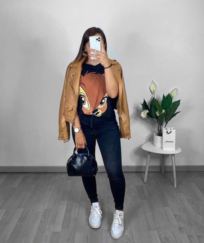 1. Denim Jacket and T-Shirt: Pair a classic denim jacket with a simple t-shirt. Opt for a relaxed fit and a soft fabric for ultimate comfort. You can choose a plain t-shirt or go for one with a fun graphic or slogan. Combine it with your favorite pair of jeans or denim shorts, and complete the look with sneakers or ankle boots.