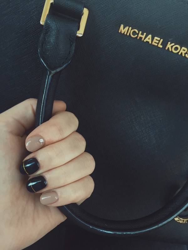 Another example of a simple design that can be worn anywhere. The black is there and it’s shiny, which looks great on square nails.