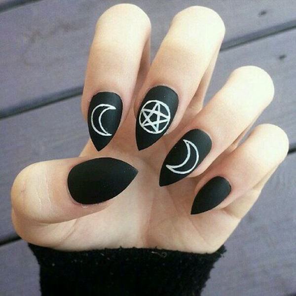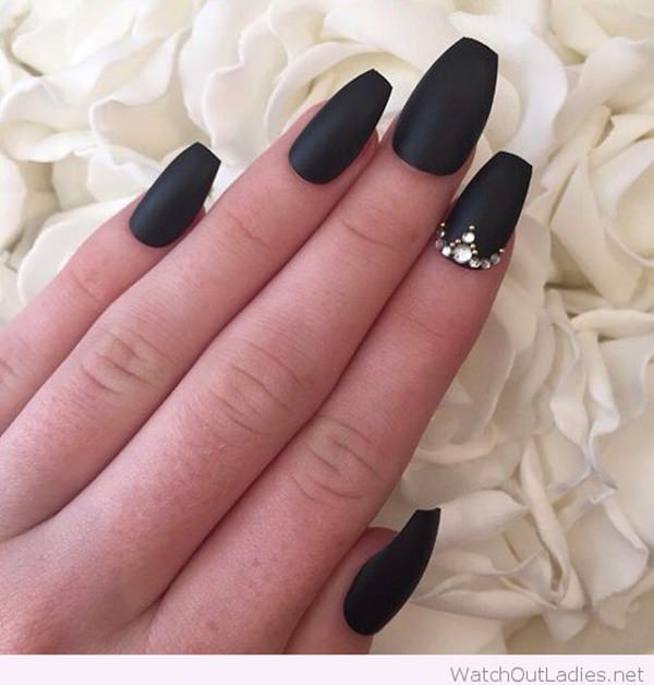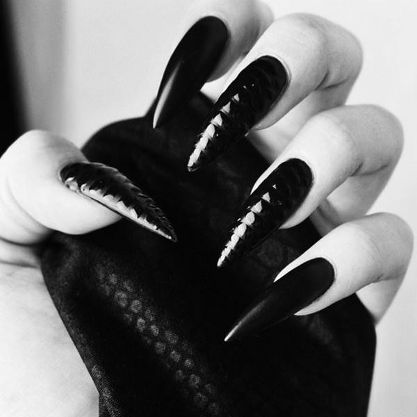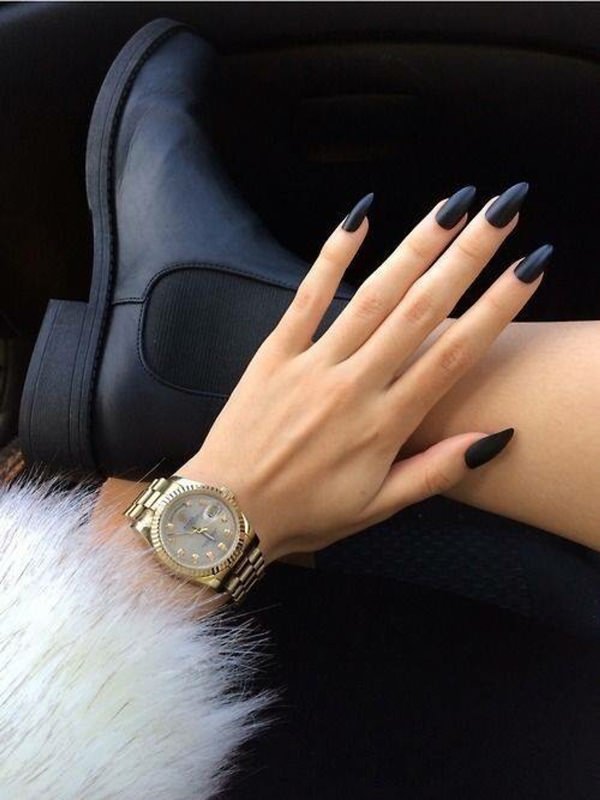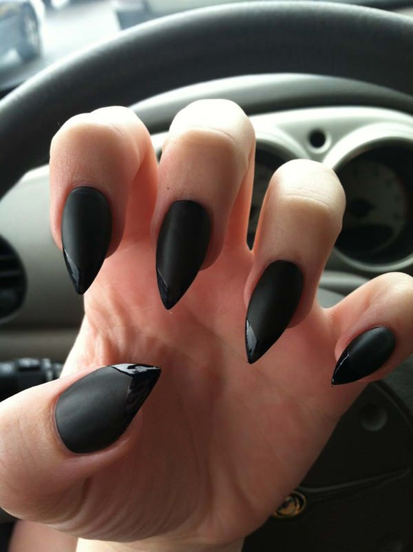 If you like your nails sharp, then this is the design for you. Matte black with a little shine and this look is perfect.