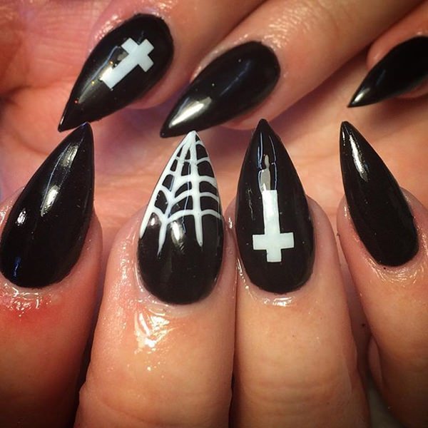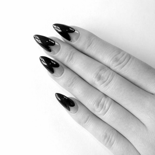 If you love hearts then you are sure to love these ones. These pointy nails are unique and have a wonderful design. The hearts are just an added addition to the design. Just because they are hearts it doesn’t matter mean they can’t be black.