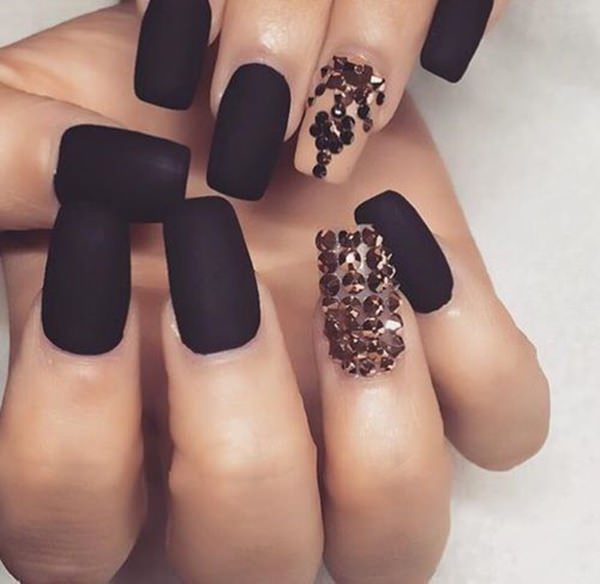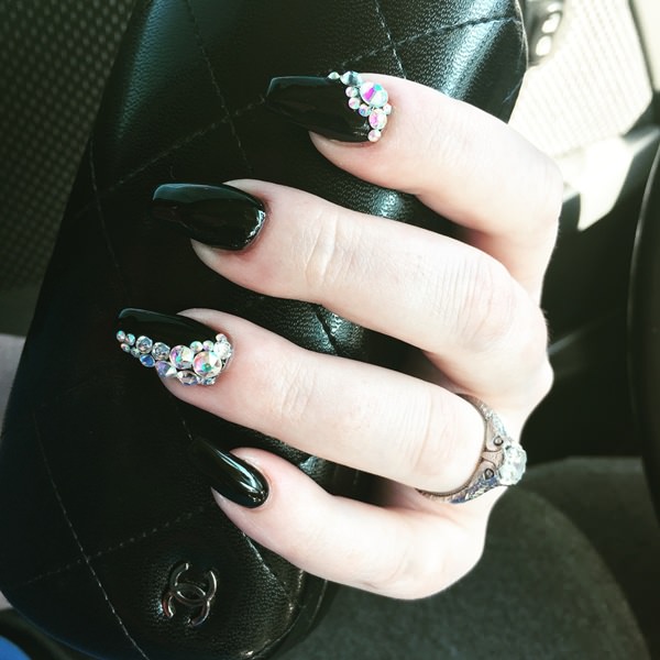These black nail designs look cool with these jeweled pieces. It’s a cool way of having a unique style.