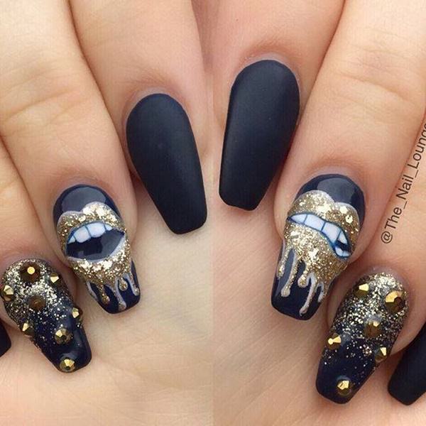 I love this amazing and fun design. Look at those gold encrusted lips, they are just amazing! The lips are the best part about the design because they are fun and the gold sparkles and don’t forget all the other bling.