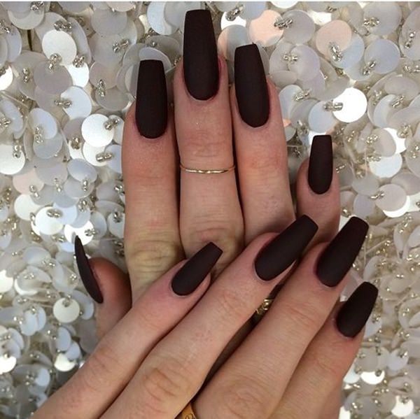 This is a great look for your next event. Imagine a wedding where you get to knock the socks off with this matte shade. Long nails look great with black.