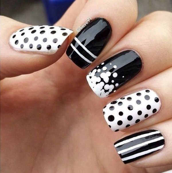 Black and white designs are always classic. These are beautiful designs that include dots and stripes. I love the monochromatic elements of these nails, you will love them too.