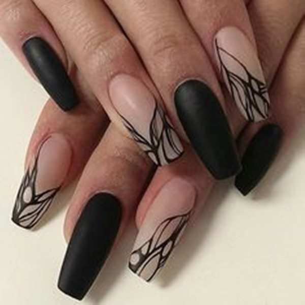 These black nails are matte black and they have a shiny black tip to it. The nails are sharp, so it gives a completely different style. The tips are shiny black which really makes it stand out and the design is gorgeous. It’s one that you are really going to want to try out.