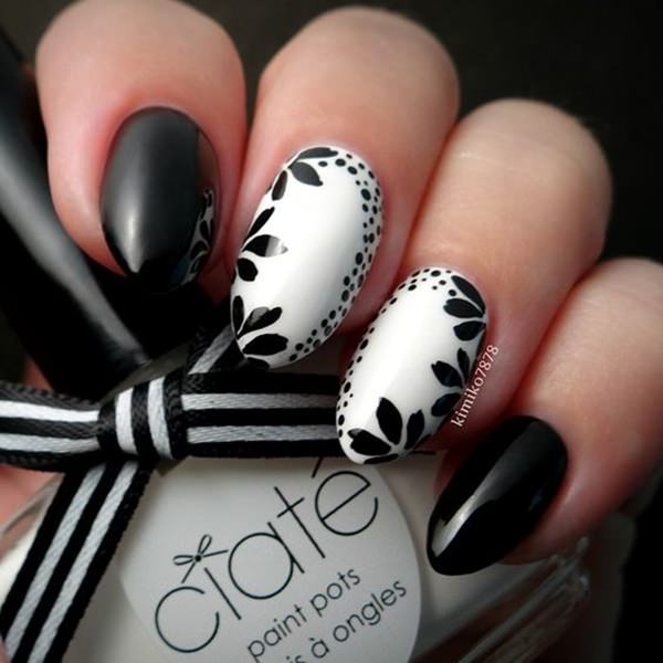 Black and white designs where the white nails have some very elegant black flowers on them. These are classic elements that really look amazing together.