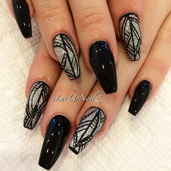 There are shiny black nail designs that have silver elements that really make the nails pop. The silver is very unique and it looks mazing as a design.